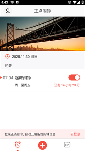 正点闹钟老版本app是实用生活提醒工具,操作简单,界面极简清爽,涵盖多种提醒模式,支持一键添加,可自动播放音乐新闻,自定义报时,能云端同步备份闹钟,还有智能语音识别。适用于主流手机平台,让用户轻松管理时间,不错过重要时刻。