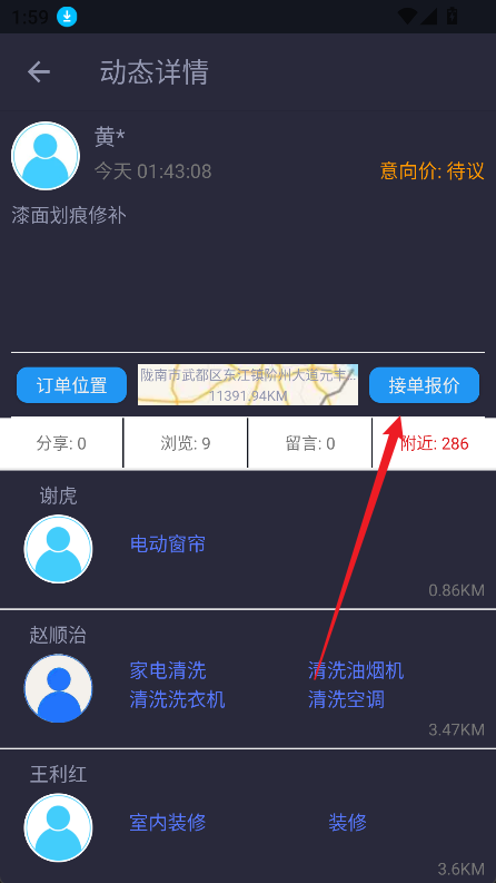 3、不搞竞价排名,资源合理公平分配,师傅可根据自身专业和派单情况选择性接单报价,操作简单,体验感超棒。