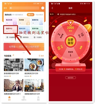 APP和公众号首页,点击上方[抽奖中心]即可开始抽奖。参与每日任务还能获得免费抽奖机会!