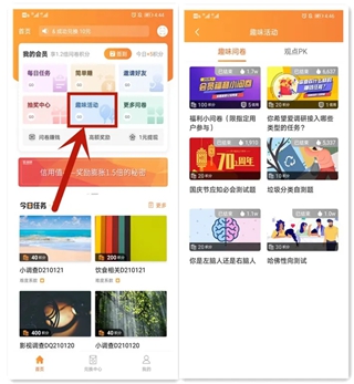 你还可以进入【趣味活动】板块,参加趣味问卷和观点PK,轻松娱乐的同时把积分给赚了。