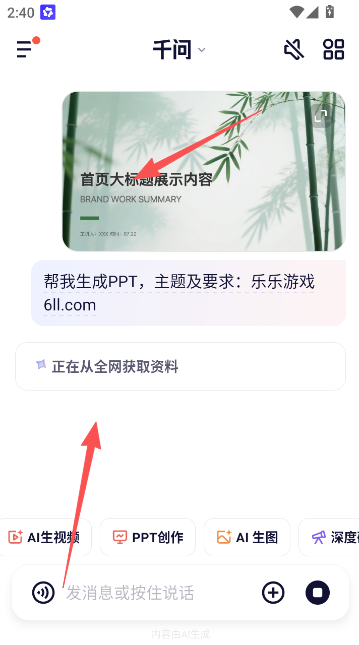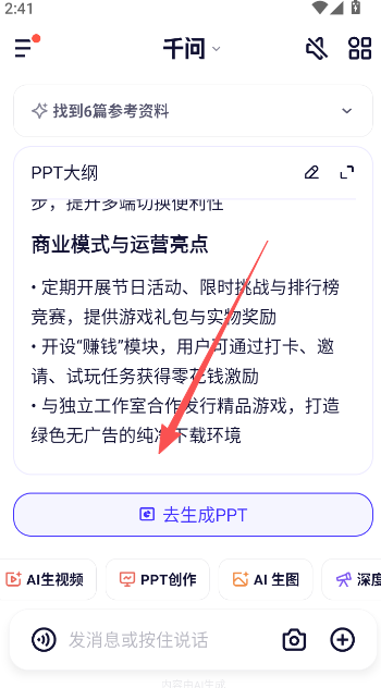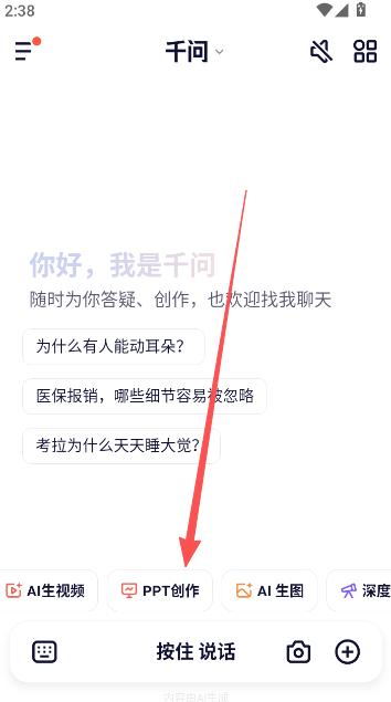1、点击千问app下方,向右滑动找到PPT创作版块。
