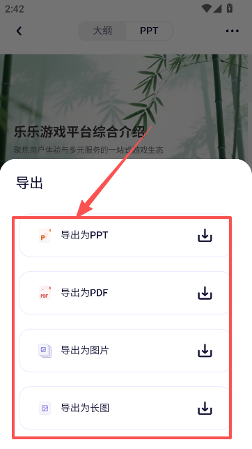 6、如果符合你的使用需求,可下载导出,导出格式可以选择为PPT、PDF、图片或是长图格式。