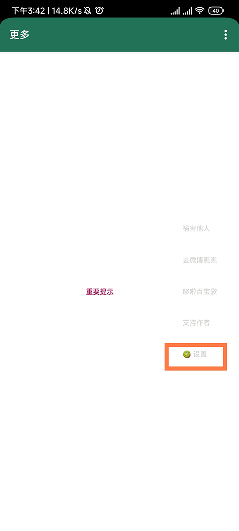 我们再回到【更多】页面,找到设置点击进入应用列表界面。