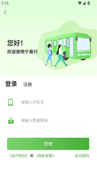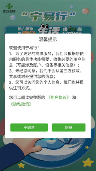 1、在自己的手机桌面上下载宁易行app,阅读隐私协议后点同意。