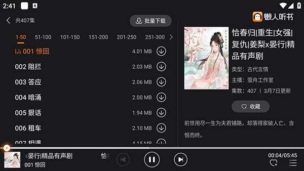 懒人听书TV版是专为电视大屏打造的正版有声阅读平台,依托海量出版物与原创文学资源,覆盖小说和历史人文等全品类内容,支持智能推荐和多端同步听书记录,并提供睡眠定时等贴心功能,让用户足不出户即可通过遥控器畅享沉浸式听书体验,满足全家不同年龄层的碎片化学习与娱乐需求!