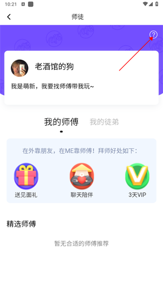 1、打开软件,点击左上角头像找到“师徒”选项。