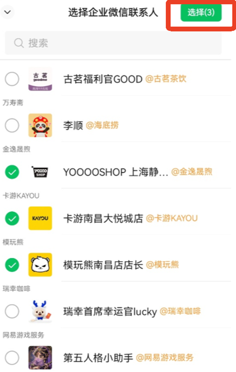 选择下方的联系人,然后点击右上角的【完成】即可。