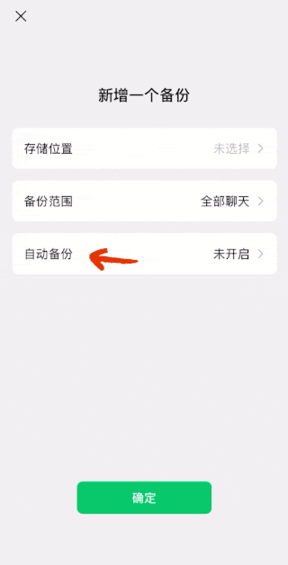 4、聊天记录可以选择【自动备份】。如果距离上一次备份已超过24个小时,此时将手机连接到外部存储设备,即可触发。