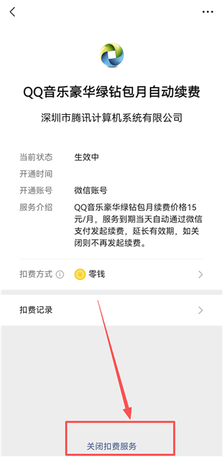 8、点击下方的【关闭扣费服务】即可关闭。
