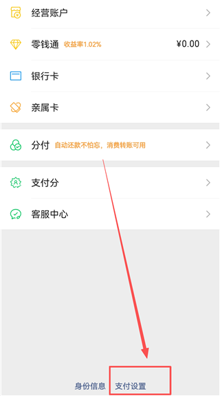 2、进入钱包界面,点击下方的【支付设置】。