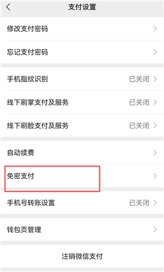 6、返回【支付设置】界面,点击【免密支付】。