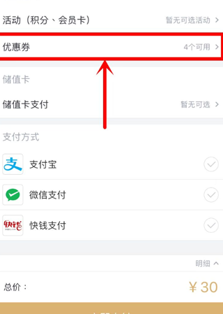 如果有人好奇小万结算截图上的4个可用优惠券
