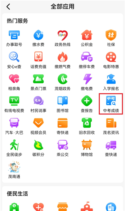6、以上是本站带来的茂名e生活App中考成绩查询流程。