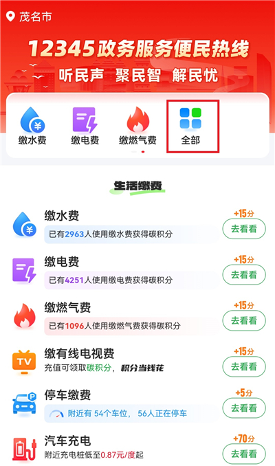 2、点击【全部】,查看全部的便民服务。