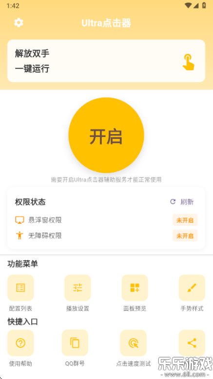 1、下载安装并打开Ultra点击器,点击开启。