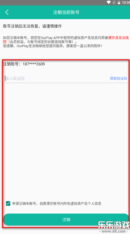 5.输入验证码,勾选申请注销本账号,自愿清空账号内所有虚拟资产及个人信息,再点击注销即可。