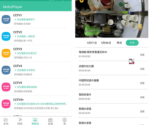 是不是好久没看电视台直播啦?MoboPlayer内置的『电视台』功能,提供了常见的央视和卫视频道直播和回看功能,偶尔看看电视也不错。