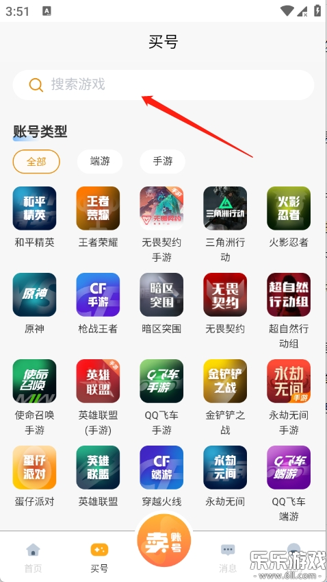 2、首页为玩家推荐了很多热门的游戏账号类型。