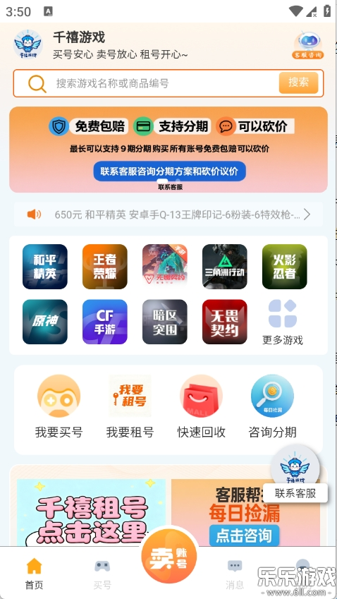 千禧代售是一款专为游戏玩家打造的游戏账号交易平台,支持多款热门游戏的账号交易,包括和平精英、王者荣耀、无畏契约、三角洲行动等,它提供游戏账号交易、手游交易、账号买卖、鉴号估价担保中介、账号回收、账号追回等服务,所有交易均签署专业电子版法律合同,确保交易的合法性和透明性。同时,提供找回包赔服务,保障用户权益,汇聚了海量优质的游戏账号资源,满足用户多样化的需求,平台采用先进的安全保障机制,确保用户的账户和交易信息安全,提供黑号查询功能,避免用户买到黑号,保障交易的安全性,交易流程公开透明,用户可以通过关键词搜索、分类浏览等方式快速找到心仪的账号,支持一键下单购买账号,获取想要的游戏账号更加便捷。