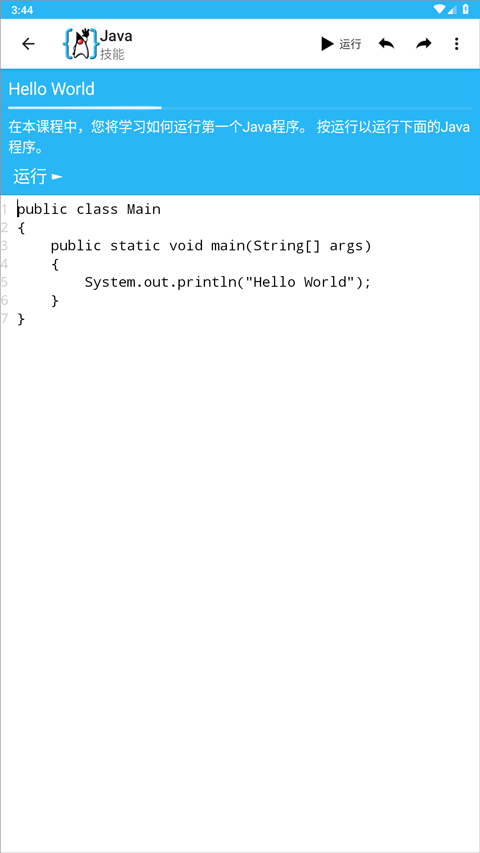 2、接着应用会进行新手教学,跟随引导点击上方运行;
