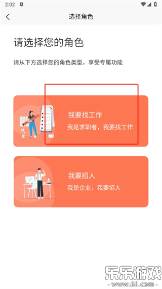 4、选择我们的注册身份【我要找工作】或者【我要招人】。