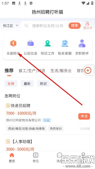1.打开扬州招聘打听猫首页,点“全部岗位”进岗位列表页。