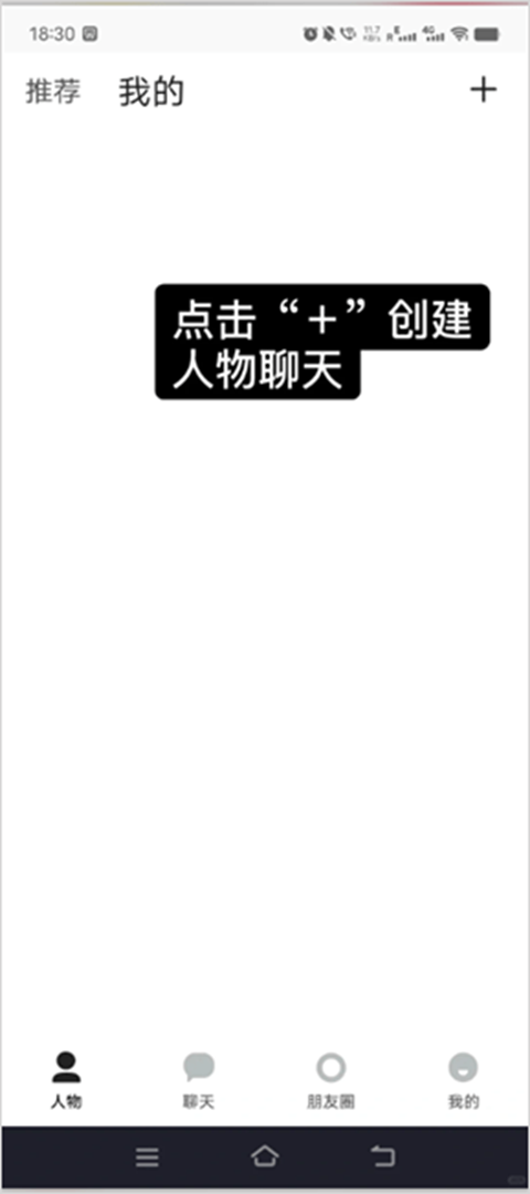 打开TalkMaker应用,进入“人物”或“我的”界面,点击右上角“+”号创建两个角色,分别设置角色名称、头像、身份背景等信息。