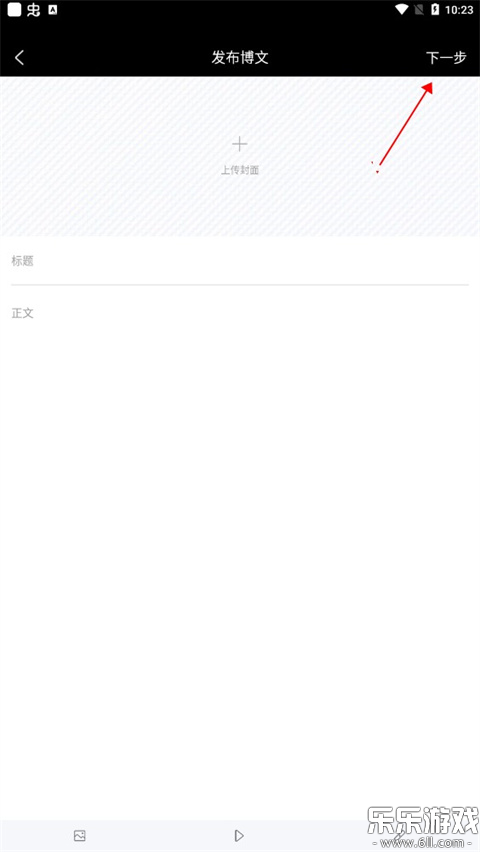 4、上传封面,输入标题和正文,点击下一步。