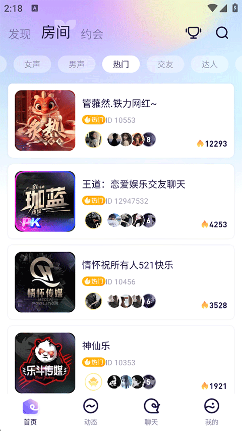 氧气语音(com.ywxk.fluorine)是一款专为手游玩家与语音社交爱好者设计的手机软件,用清晰、稳定、低延迟的语音体验,拉近你和队友、朋友之间的距离。连麦,本该如此自然,采用智能音频传输技术,有效降低回声与背景噪音。无论是激烈团战,还是轻声交流,都能真实还原人声细节。即使在移动网络下,也能保持语音不掉线、不卡顿,有需要的朋友千万不要错过了!