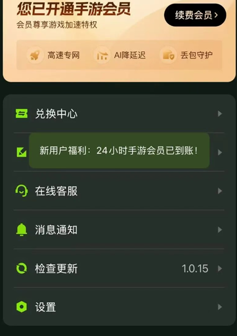 2.登录或注册,新用户额外送24小时手游会员(PC端也有的哦);