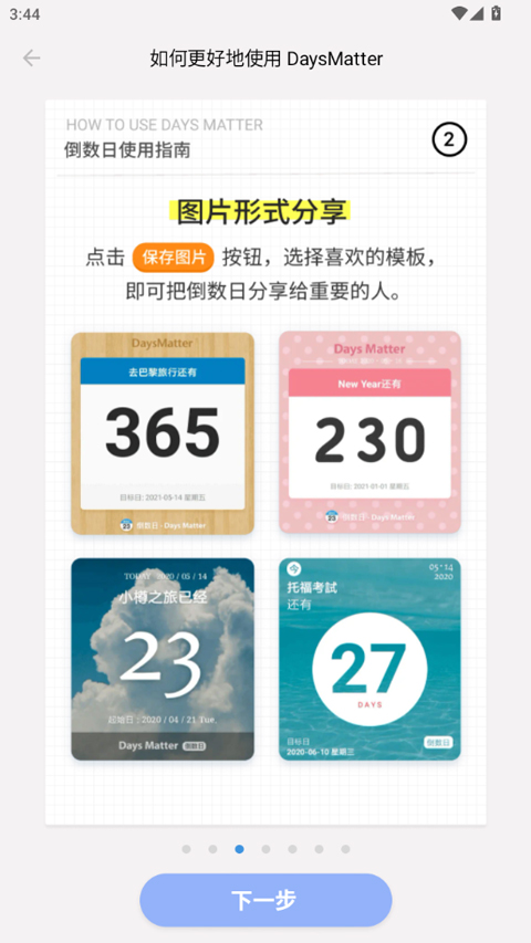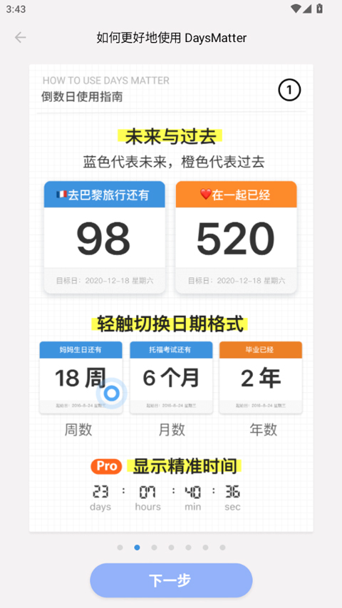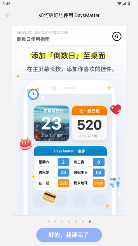 3.支持公历、农历的倒数日期计算提醒功能,重要事件醒目置顶,支持时间远近排序.