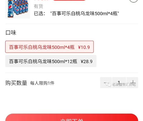 4、选择商品类型和商品数量,然后点击立即下单。