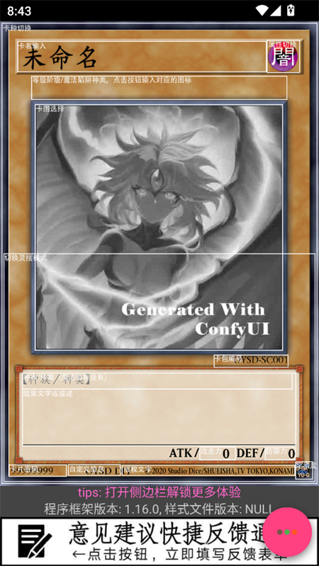 1、游戏王卡牌制作器是最早的字体完备的手机制卡工具,前身MoSE发布于2014年。
