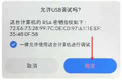 若设备弹出“是否允许调试”对话框,点击“允许”以建立连接。