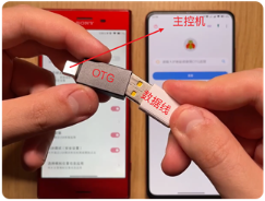 7.如果我们有OTG转接头,请打开甲壳虫 ADB 助手软件,用数据线+OTG连接两部手机。