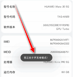 3.不断点击软件版本,下方会提示你已处于开发者模式。