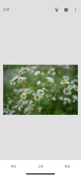 照片整体偏暗,暗部细节不够,色彩发灰,没有花卉该有的质感。像这些小问题用Snapseed来修就很好处理。