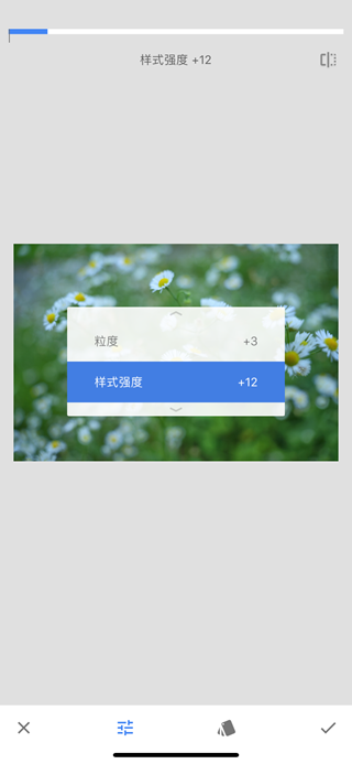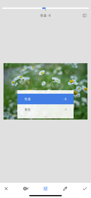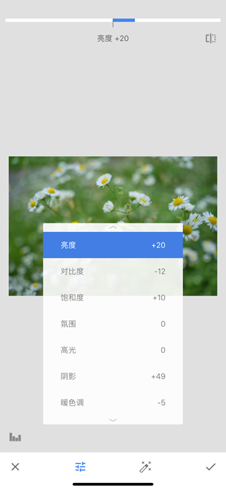 Snapseed中的大多数调整都是这样工作的:在图像上垂直滚动以选择参数,然后水平滑动以更改参数值。