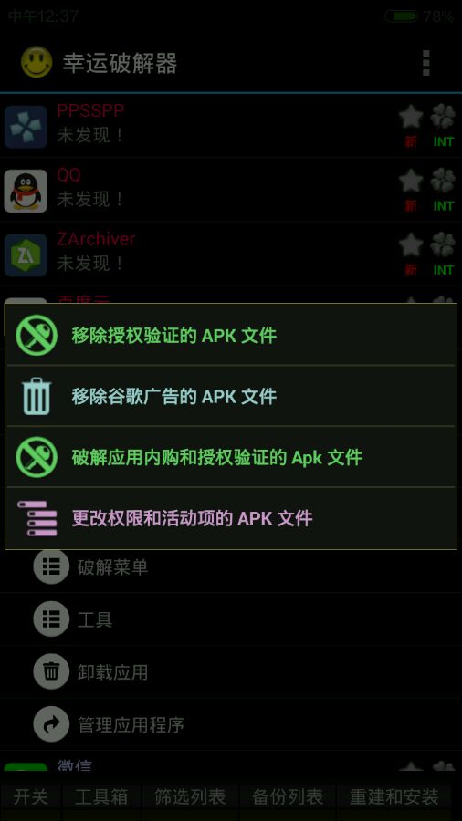 12、当然你也返回幸运破解器破解游戏选择工具箱移除已保持的内购