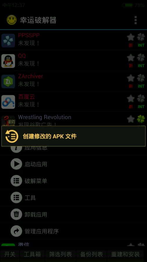 若需保留数据覆盖安装,提前用幸运破解器备份应用(长按应用 → 创建修改版APK)。
