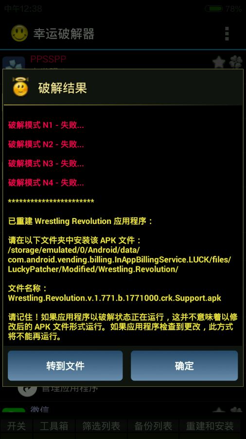 幸运破解器成功率非100%,部分应用有反破解机制,可尝试更换破解模式(如N1-N4)。