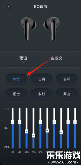 3、在预设当中你可以调整耳机的播放模式,比如自然、流行、古典等等