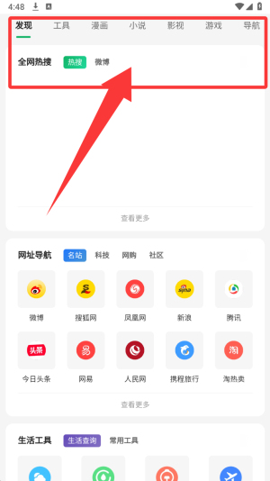 1、下载本站提供的360搜索app,在主界面当中我们能够看到一个非常大的搜索框;