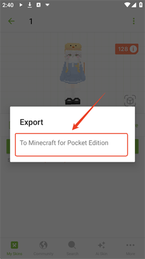2、选择其中选项,以手机版为例,我们选择用于Minecraft PE的皮肤。