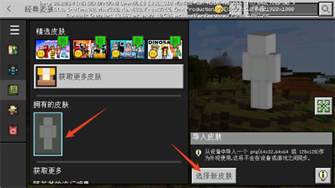 6、点击拥有的皮肤空白处,选择右侧的选择新皮肤按钮。