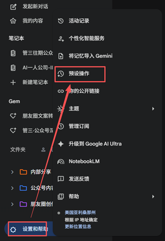 如果你创建了很多定时任务,你想进行管理和删除,直接点击左下角的设置与帮助按钮,再点击预设操作。