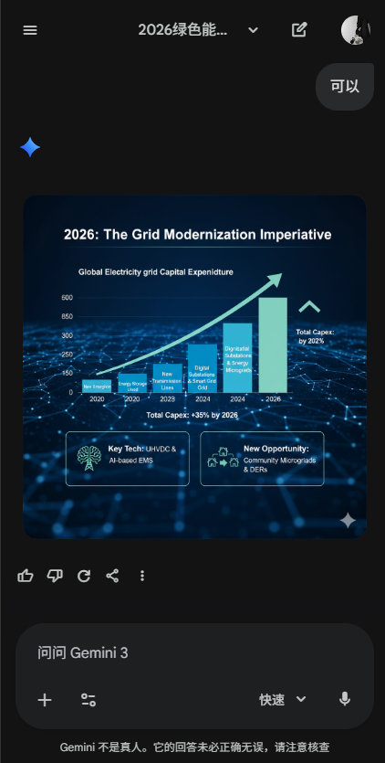数据可视化:如果你有原始数据,可以发给Gemini,让它帮你总结出最亮眼的百分比或趋势结论。