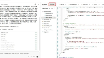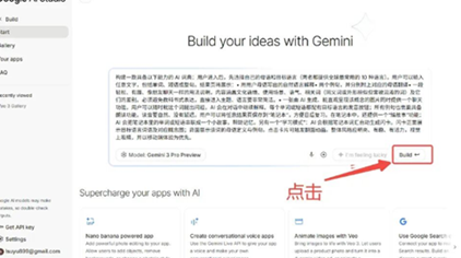 现在Gemini3.0就在帮你搭建AI应用了(点击红框可以看到代码是啥,如果你想看的话~):