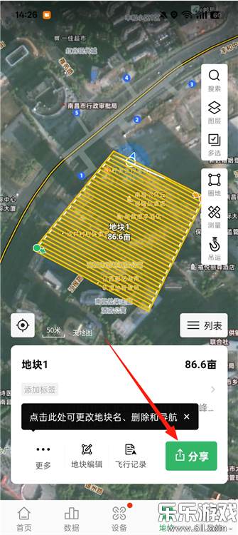 2、然后选择要分享的地块点击【分享】
