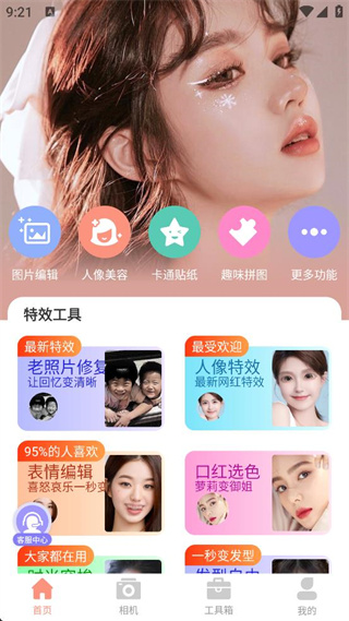 2、打开美颜自拍神器app,你将看到简洁直观的操作界面,各项美颜功能一目了然。
